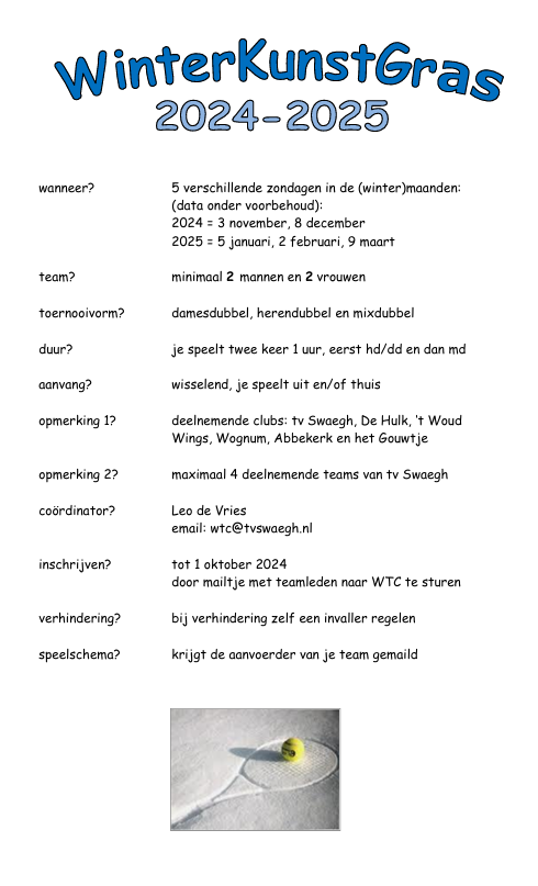 Spelsoort: Heren Dubbel, Dames Dubbel en Gemengd DubbelKlik hier voor inschrijfformulier