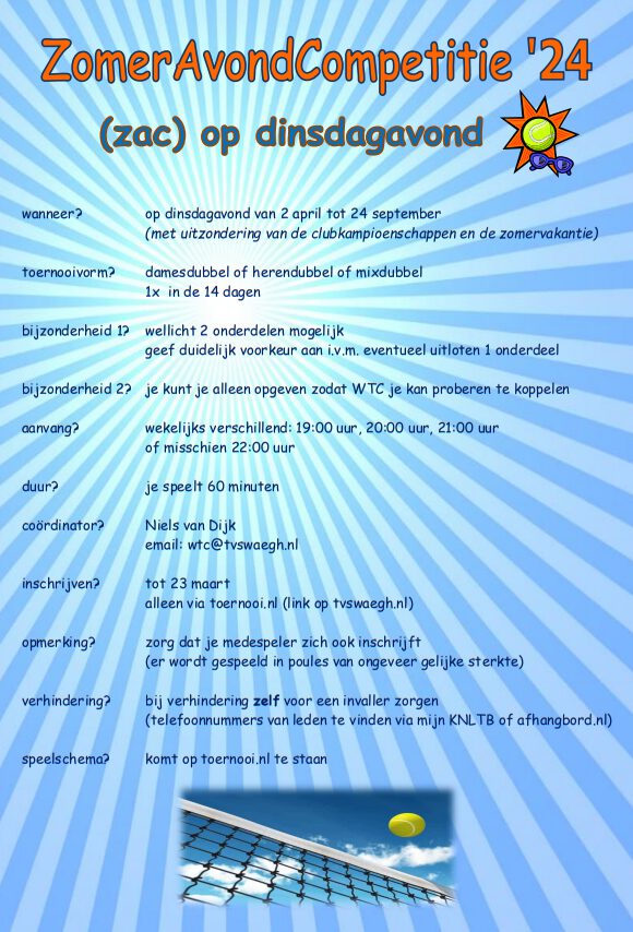 Speelschema WAC: WinterAvondCompetitie